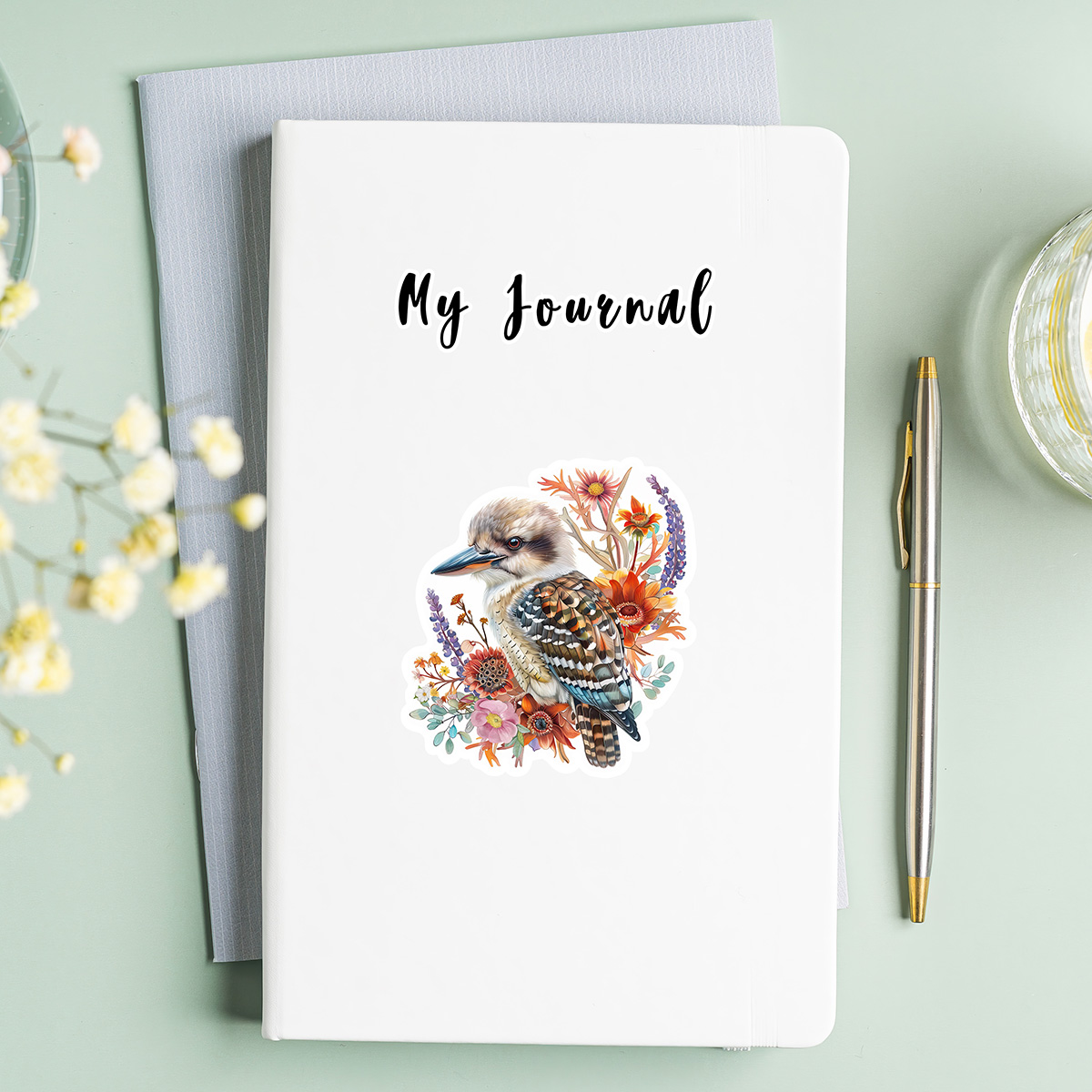 Detailed vinyl sticker featuring adorable baby kookaburra with gorgeous native flowers. Waterproof and weatherproof for water bottles, laptops, and journals. These removable, dishwasher-safe decals leave minimal residue and clean easily with hand sanitizer. Created and printed here in our studio on high-quality, durable vinyl with vibrant 300 DPI color. Comes in a protective cellophane sleeve.
