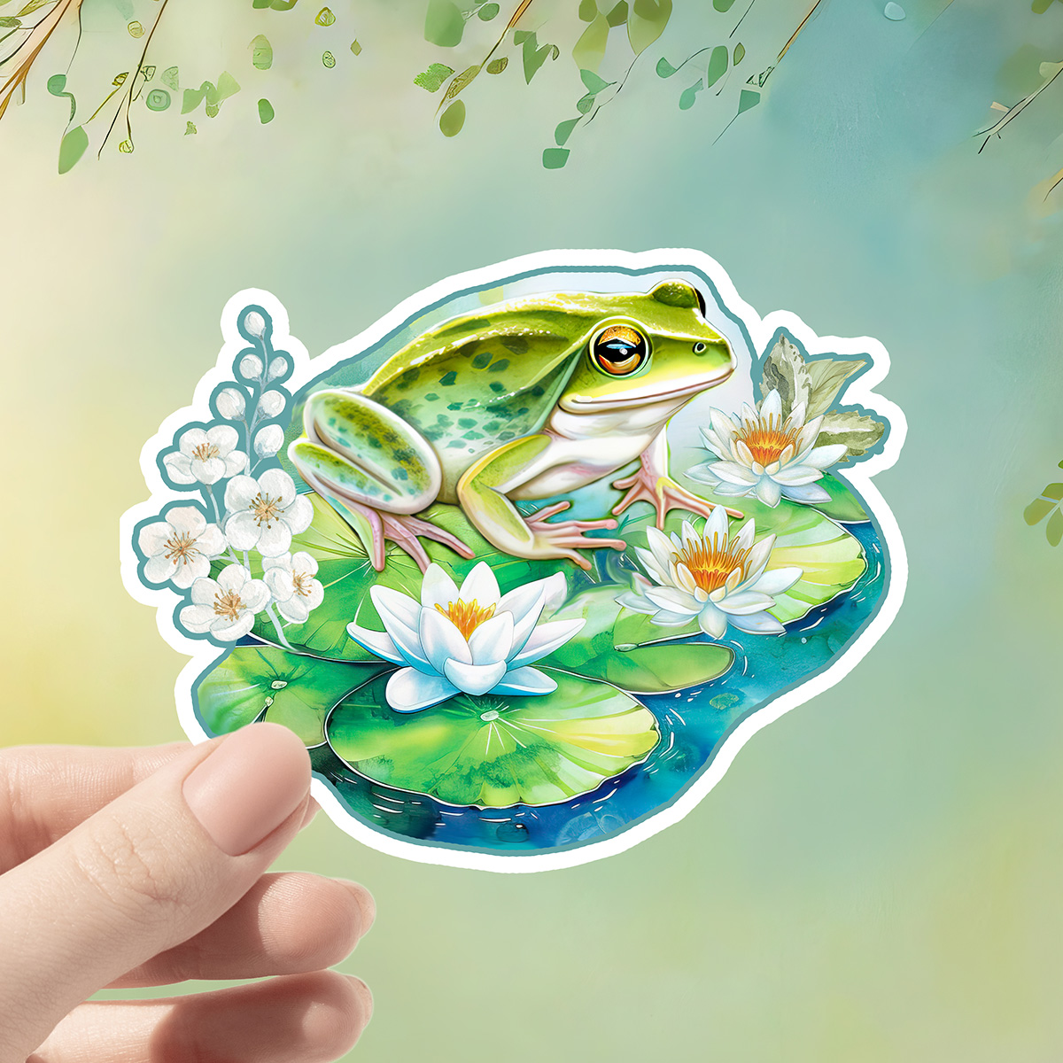 Frog on Lily Pad Waterproof Vinyl Australian Sticker