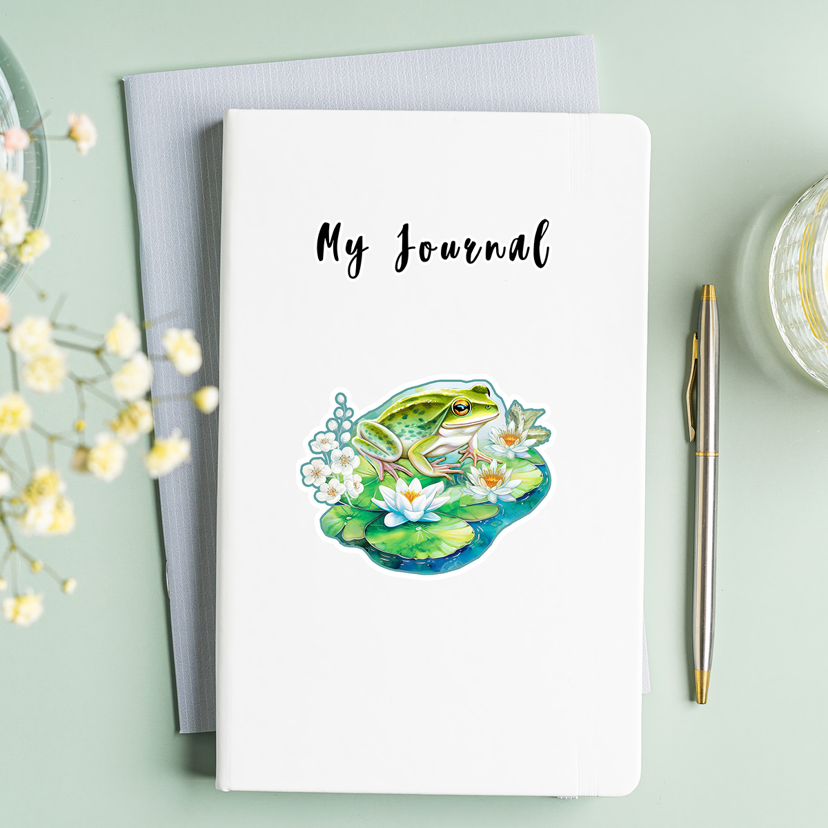 Detailed vinyl sticker featuring lovely little frog on a lily pad. Waterproof and weatherproof for water bottles, laptops, and journals. These removable, dishwasher-safe decals leave minimal residue and clean easily with hand sanitizer. Created and printed here in our studio on high-quality, durable vinyl with vibrant 300 DPI color. Comes in a protective cellophane sleeve.